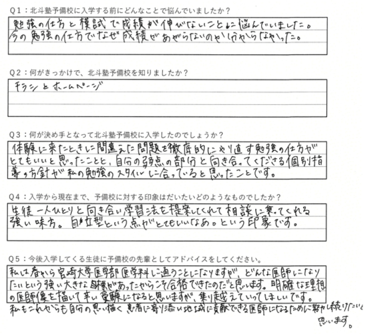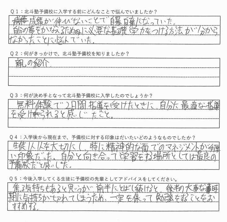 模試の結果に一喜一憂していましたが、北斗塾で「模試の活用法」を学び、本当の実力向上に集中。