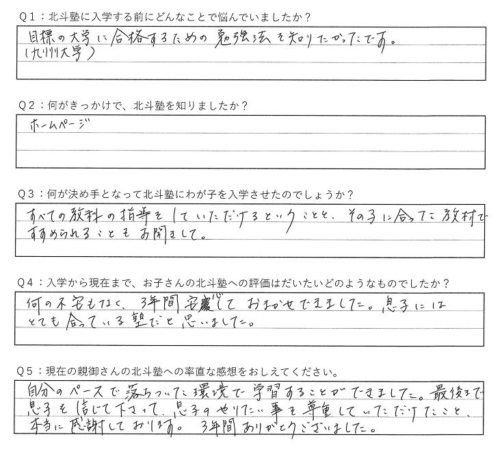 1人1人を大切にする指導と精神的な支えで、希望の大学に合格できました。